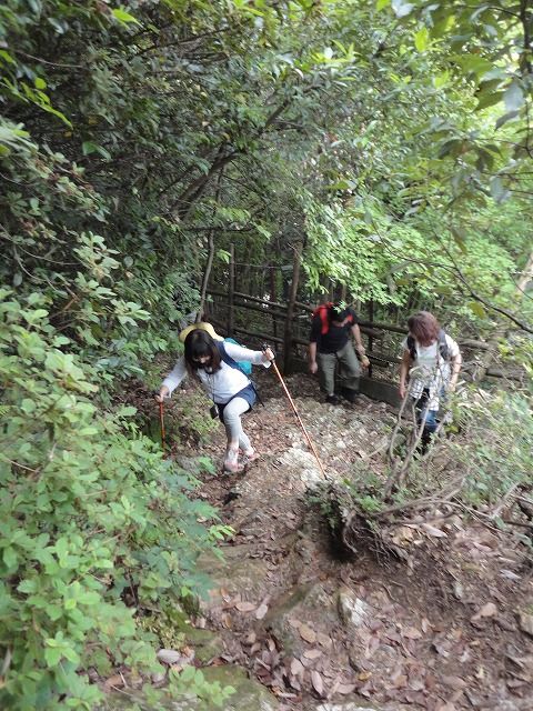 杖がないと危険な所もあり みなさん汗びっしょりです