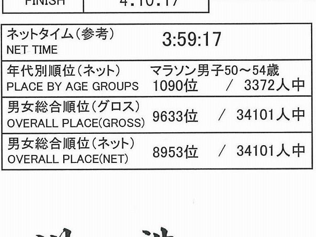 申し訳なさそうに小さく ネットタイム(参考)3:59:17とあります
