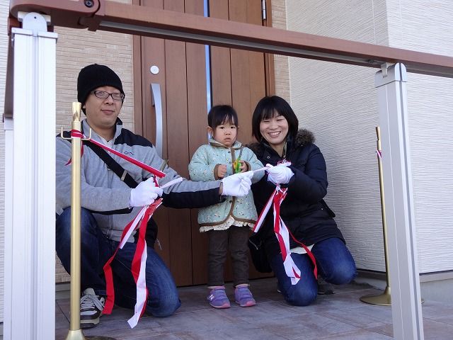 恥ずかしがりやのお嬢さんも 一緒にテープカットを