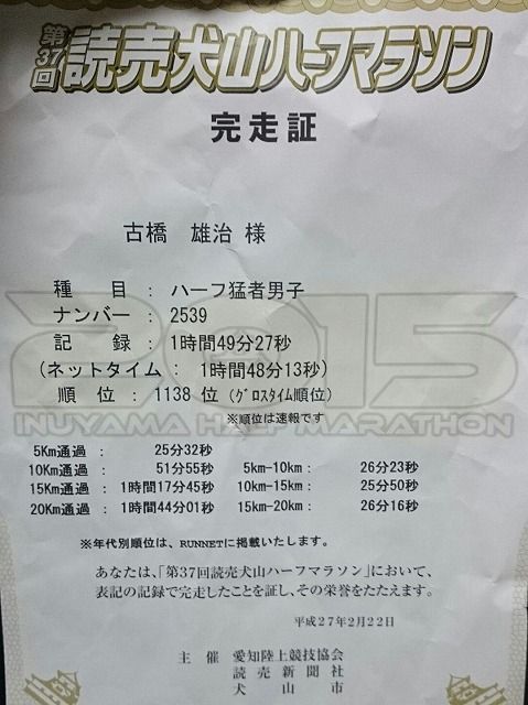 ハーフのベストまで8分ほど足りないし 一昨年の