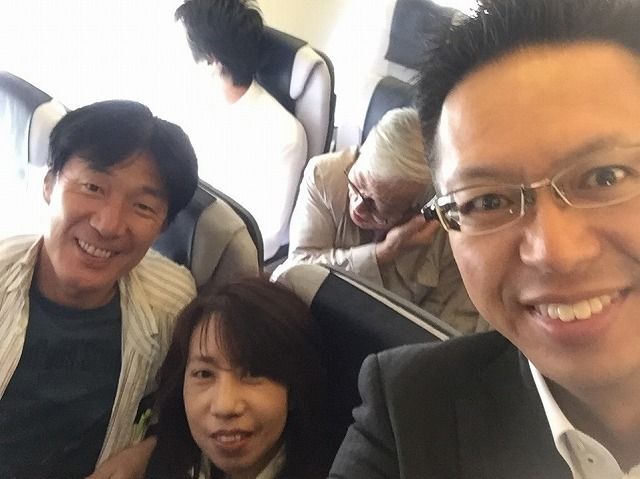すると飛行機の中で通路を挟んで隣の席に 出張のため