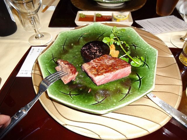 さて夜は 翡翠で焼くステーキとして有名な「八傳」さんに