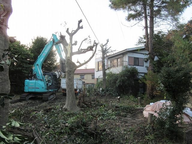 近所の神社の隣で 住宅の新築工事をするための解体工事が