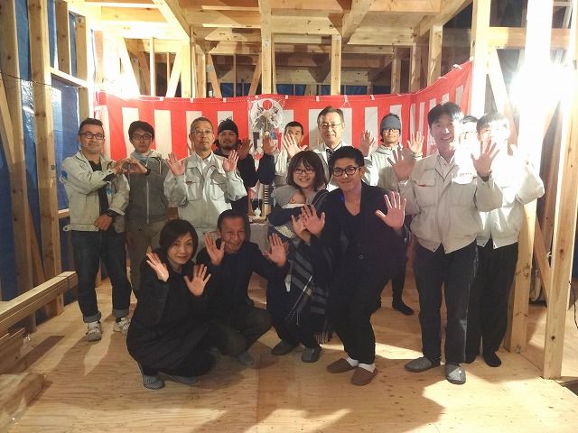 施主様は今日はうまく休みが取れ、上棟なので朝から建ちあがるのを