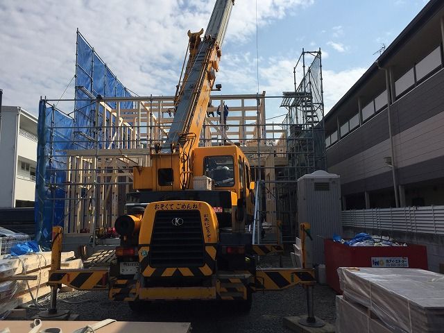 晴天の昨日 中村区の真ん中の 二瀬の家で建て方を行い