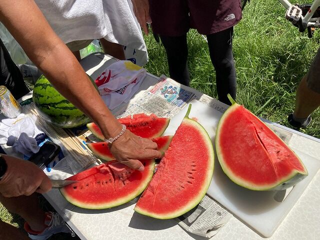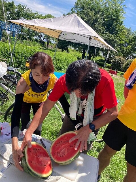 座り込んで食べて大満足、後半の坂道では失速しても何とか