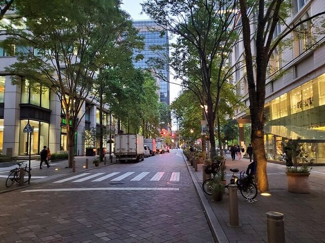 東京駅赤レンガの駅前の町並みは人影もまばらでとても良い