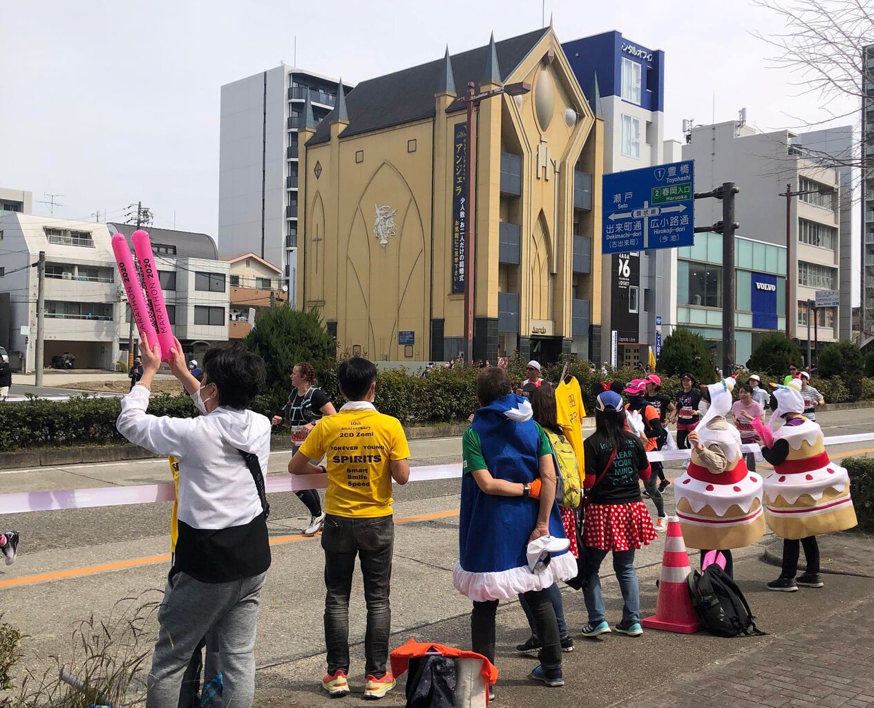 仮装して楽しんでいる人たちや痛みをこらえて何とか完走しようと