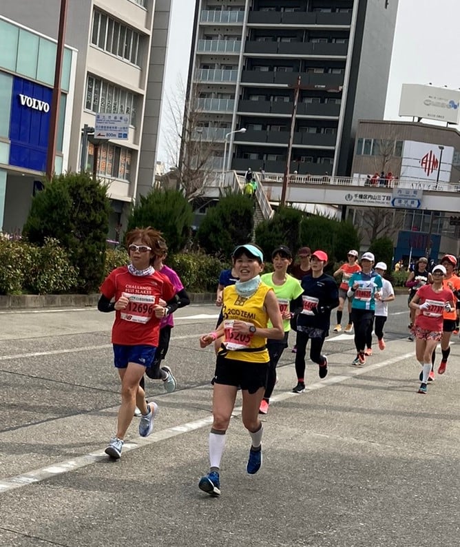 女性ランナーがそこで迫ってきたので 意地でも抜かせないぞと