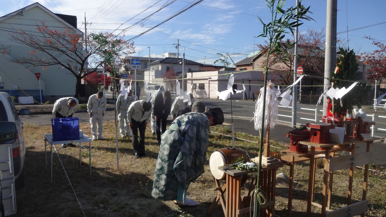 平成建設の事務所から歩いて数分のところで地鎮祭を
