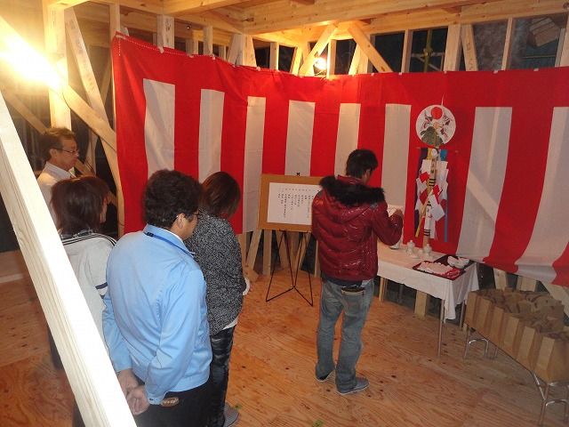 17日の土曜日 雨の中で上棟式を開催しました