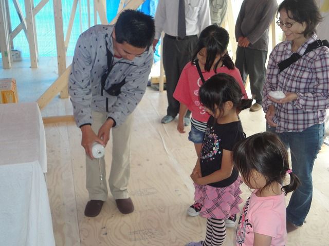 稲沢市で上棟式 稲沢市の西の方で上棟式を開催しました お父さんとお母さんも一緒に7名での賑やかな式に なりました 三姉妹のお嬢ちゃんたちが本当に可愛くて可愛くて・・・ 全員で記念写真 ご家族の毎日の楽しそうな生活が目に浮かびそうです 全員写真で恥ずかしくなって後ろを向いてしまった 一番下のおじょうちゃん 私には笑顔をくれました ステキな家を創っていきます 名古屋で自然素材の注文住宅 平成建設(株) 雄治 こっちもね→社長のひとりごと 2013.05.21 ブログ 社長ブログ < 前へ 一覧へ 次へ >