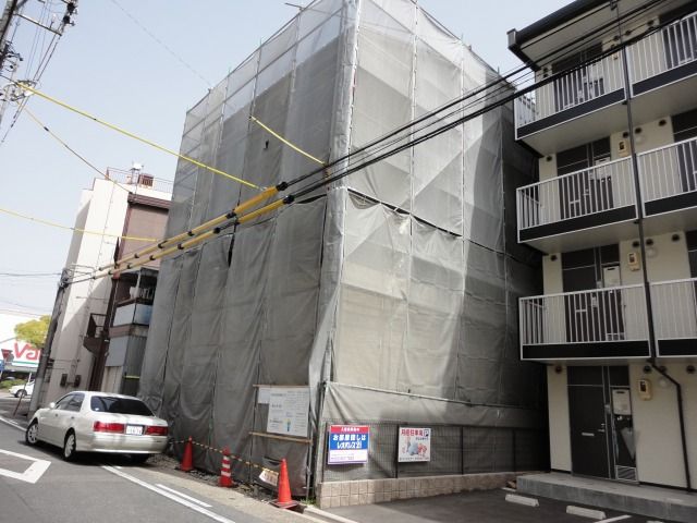 新栄で工事中の重量鉄骨の建物の断熱材を施工しました