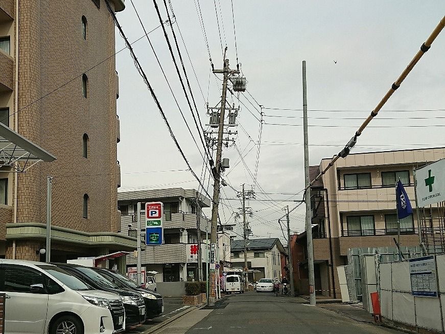 我が家の近所で毎日通る道沿いに 倒れかけの電柱があります